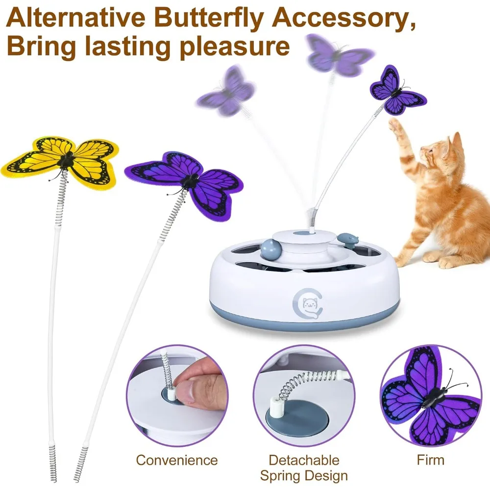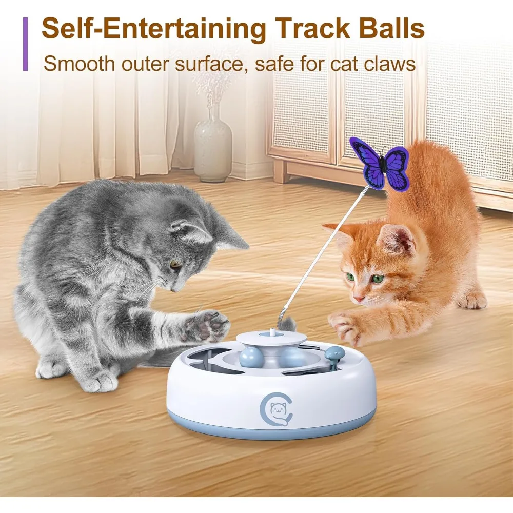 Cat Toys 3 in1 Automatic Interactive Kitten Toy, Moving Ambush Mouse, Fluttering Butterfly, Track Balls, USB Powered, Indoor Exe